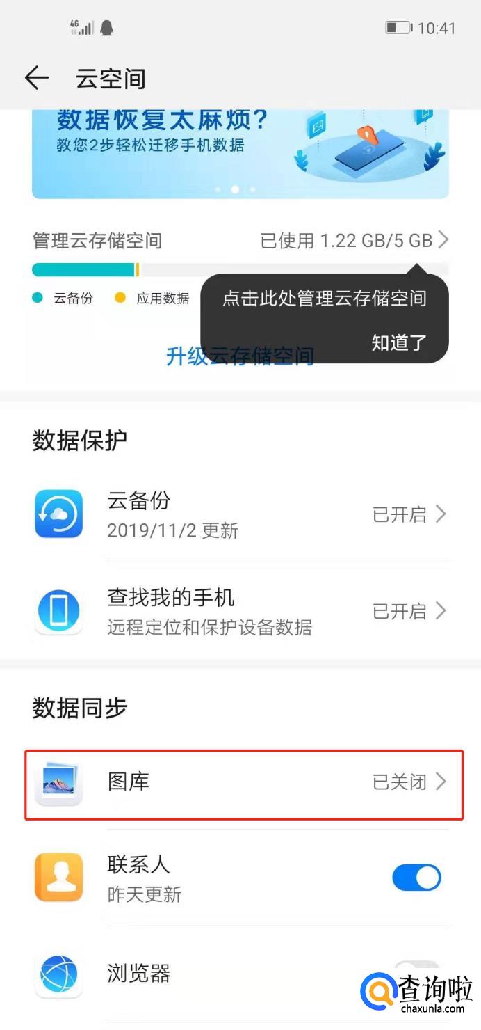 点进去后,在数据同步下找到图库,点击。