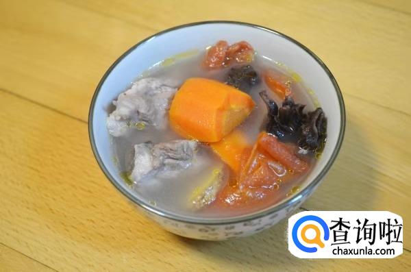玫瑰茄排骨汤玫瑰茄10g,猪排骨250g,加水800毫升,煲3小时,根据自己的口味加入各种调味料即成。