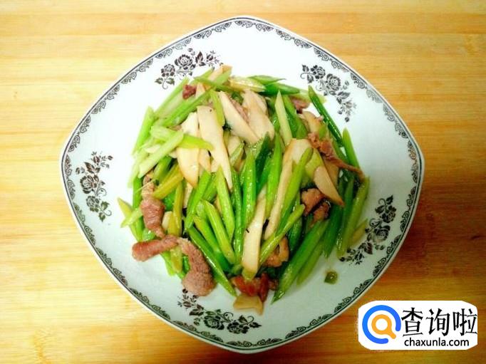 香芹 250克,杏鲍菇 150克,猪肉 100克。