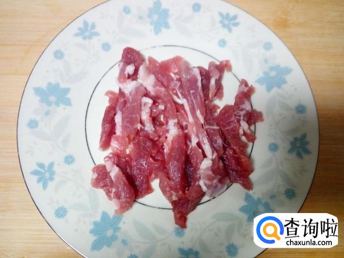 猪肉用水冲洗干净,控干水分,切成片。