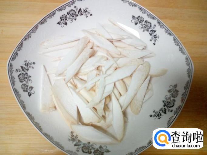 杏鲍菇用水清洗干净,控干水分,切成片。