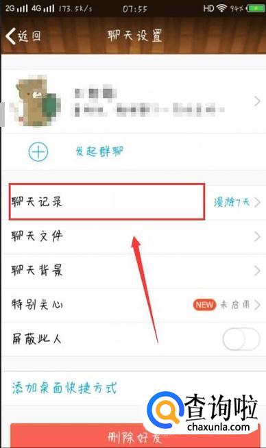 在下一页面,点击“聊天记录”即可查看消息记录,如图所示。