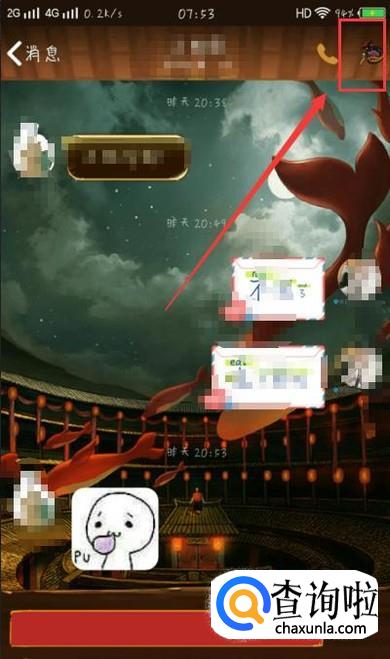 在聊天对话框页面,点击右上角,进入下一页面,如图所示。
