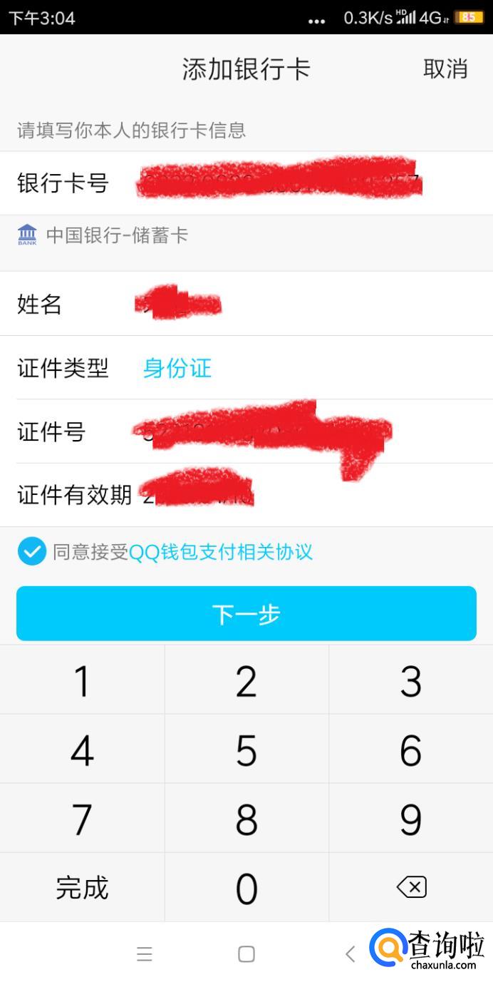 进入之后要弹出一个界面,填上银行卡和身份证信息,然后下一步。