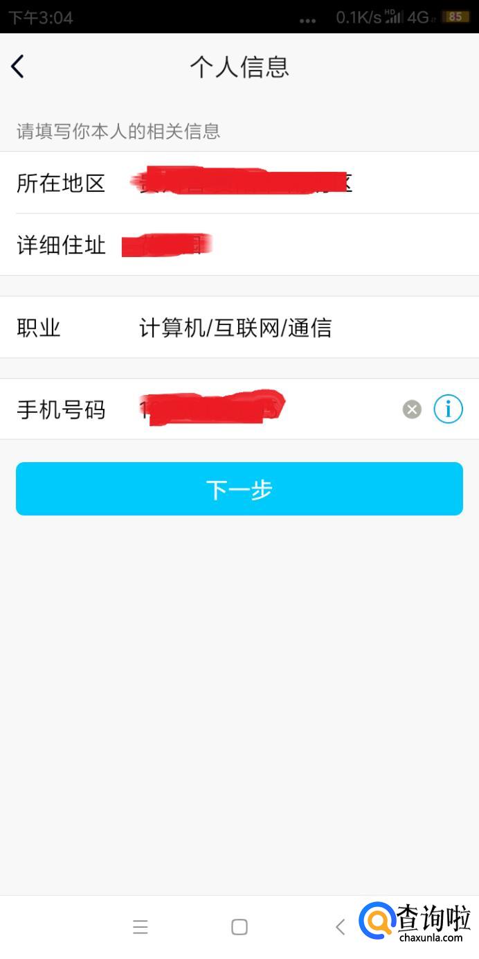 之后再填个人信息,包括住址,以及重要的电话等,再下一步确定。