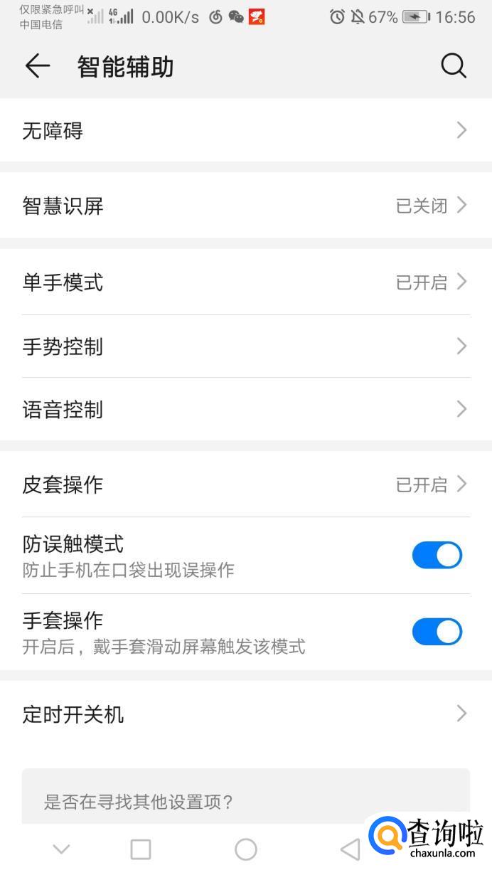 我们还可以检查手机是否开启了手套模式,在手机的设置---智能辅助----手套操作,这个模式会影响手机操作的灵敏度,根据自己的需要打开或者关闭。