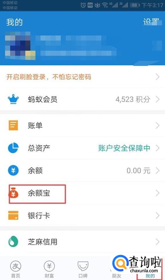 进入支付宝之后,我们点击我的,然后我们点击余额宝;