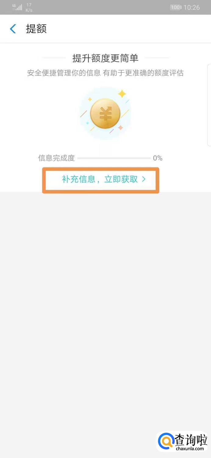 在【提额】页面需要获取你的信息,点击【补充信息,立即获取】。