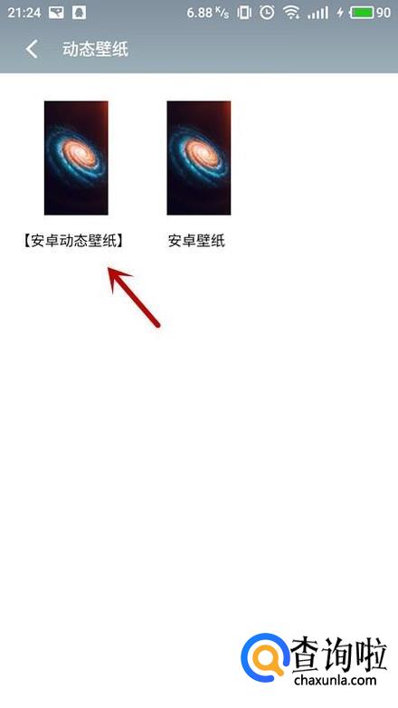 在动态壁纸设置界面,选择“安卓动态壁纸”进行使用即可。