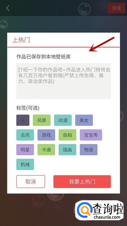 弹框提示保存成功,即可将该动态壁纸保存到壁纸库。