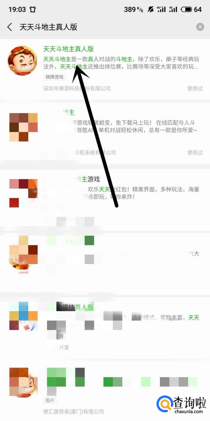 进入之后,搜索“天天斗地主真人版”点击并进入,如图所示。