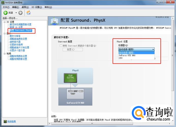 也可以选择Surround、PhysX的PhysX设置,将处理器换为独显处理器。