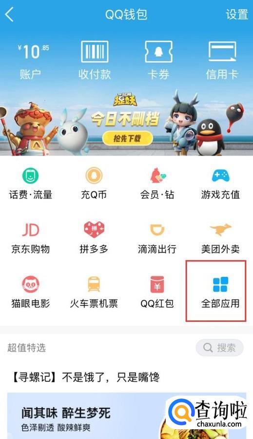 首先登录个人的手机QQ账号,成功登录后接着点击“QQ钱包”按键。