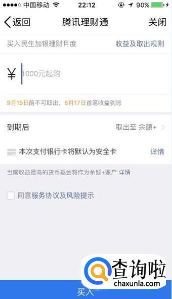 进入腾讯理财通页面后,为了保证能够盈利,此时尽量选择低风险的,第一次购买需要做一个风险评估。
