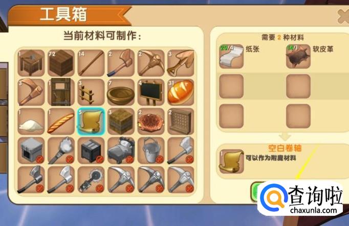 然后使用纸和皮革就能生成新的物品,就是卷轴。