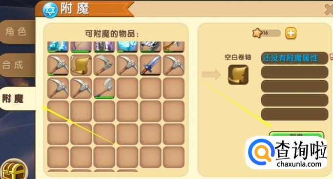之后打开背包,找到附魔选项,将卷轴放入,花费一个星星就能变成魔力卷轴。