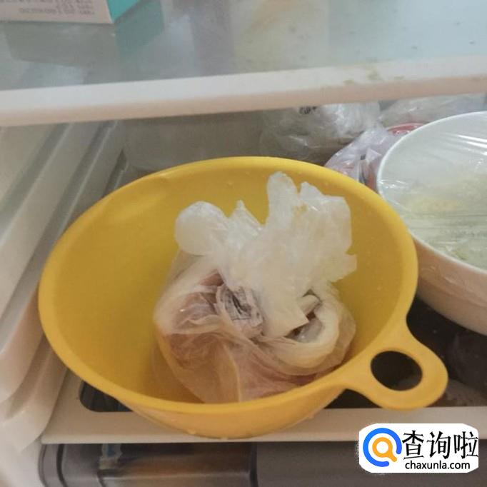 然后把需要解冻的食物放盆子当中,如下图所示。