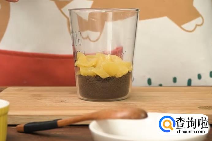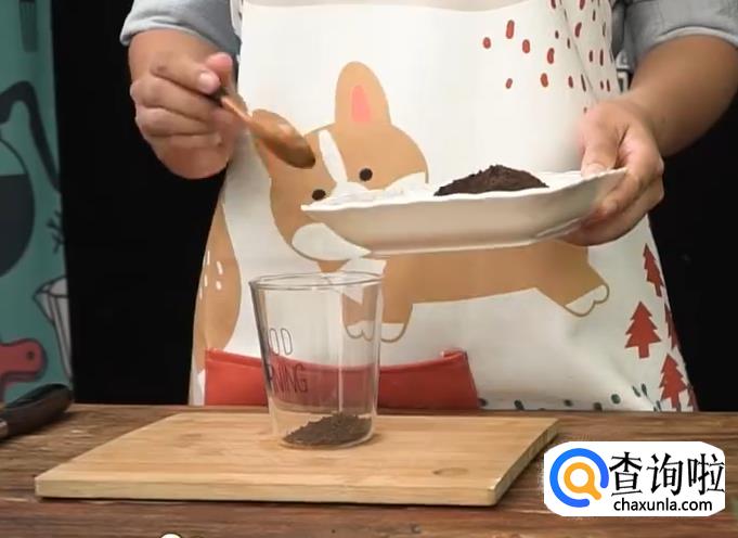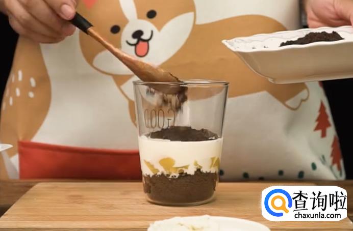 在杯子里,先铺一层饼干碎。