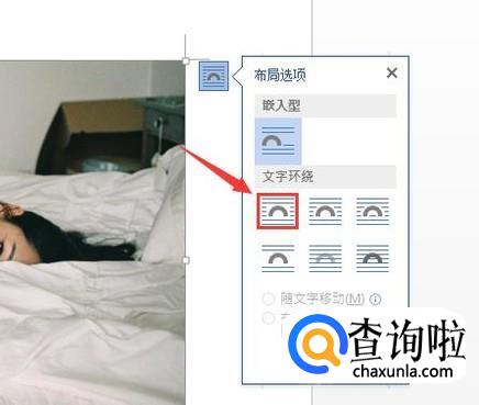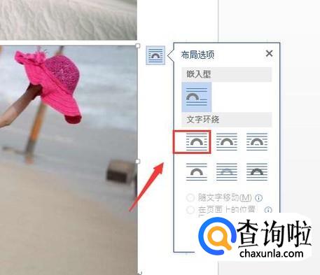 使用word将我们的文件打开,然后选择图片在图片的右上角找到布局选项,如图所示: