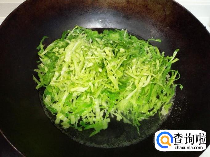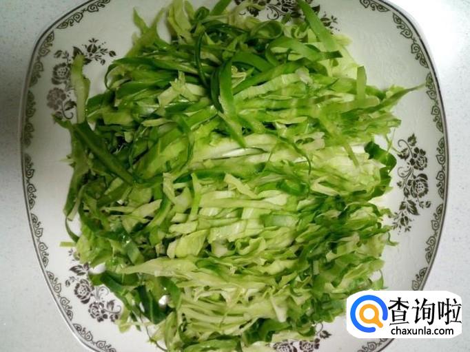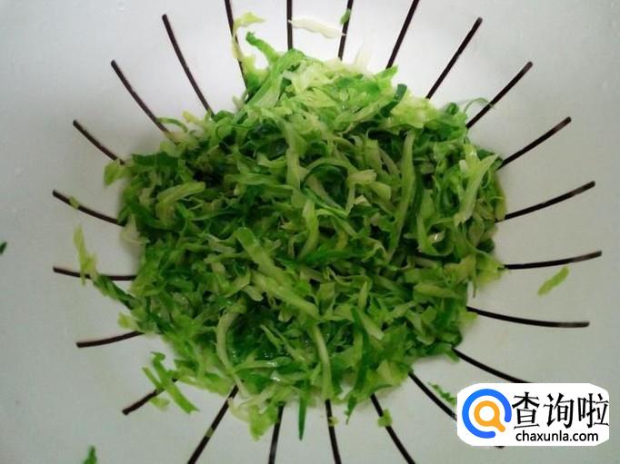 甘蓝收拾清洗干净,控干水分,切成丝。