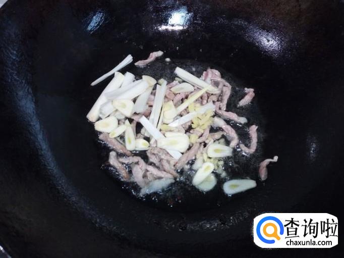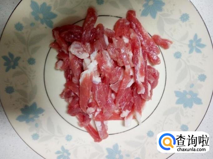 猪肉用水冲洗一下,控干水分,切成丝。切好葱,姜,蒜,备用。