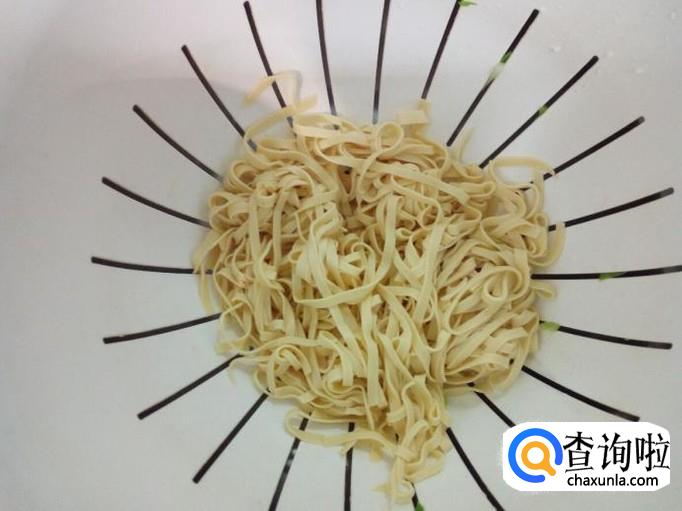 甘蓝用水焯一下,水开后入锅10秒钟捞出,迅速用冷水过凉,沥干水分。