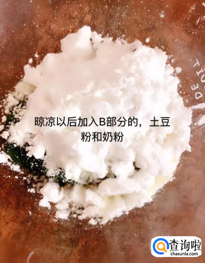 等到面放凉以后加入土豆粉和奶粉,如下图所示。