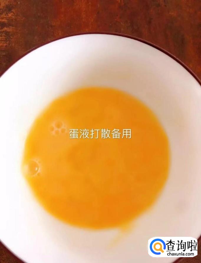 然后把鸡蛋打散备用,如下图所示。