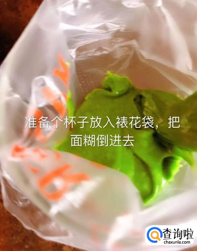 然后把调制好的材料装入裱花袋,如下图所示。