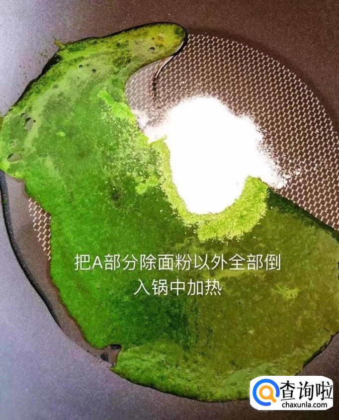 首先把A部分除面粉以外的全部材料倒入锅中加热,如下图所示。