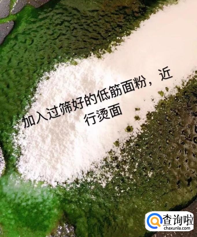 接着往锅中加入过筛好的低筋面粉,留下图所示。