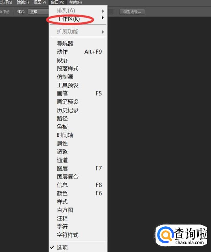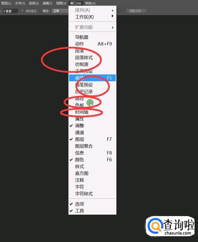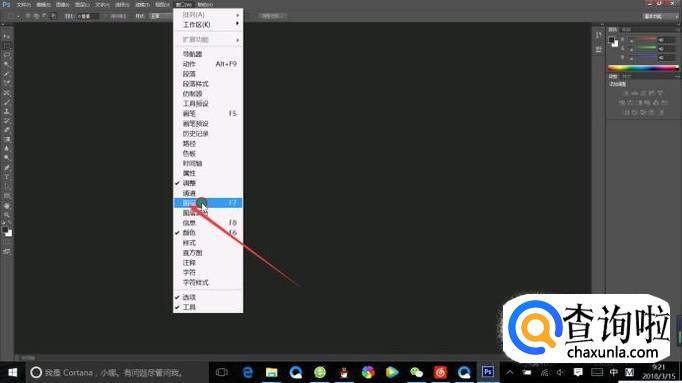 那我们就可以单击窗口,选择我们丢失的功能即可,比如上图我们丢失的是图层,我们就选择图层即可