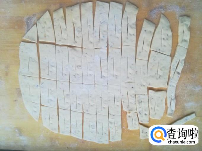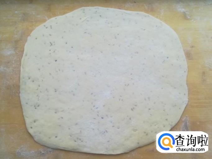 把饧好的面团,用擀面棒擀成薄点的面皮。