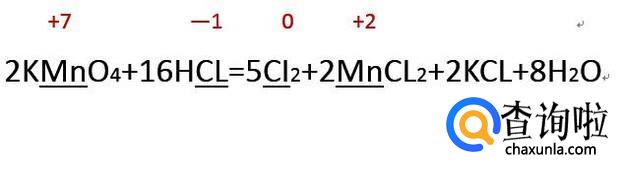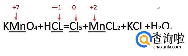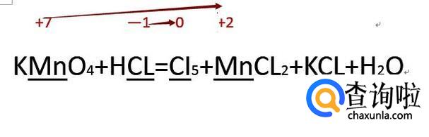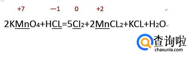 然后找出元素化合价发生改变的元素,一般的氧化还原反应只有两个元素发生改变,一个升高一个下降。如下图中锰元素和氯元素发生了化合价的改变。