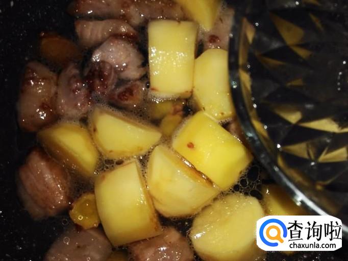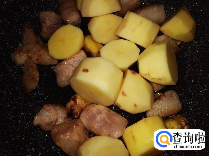 然后放土豆进去,加适量的盐翻炒20秒左右。