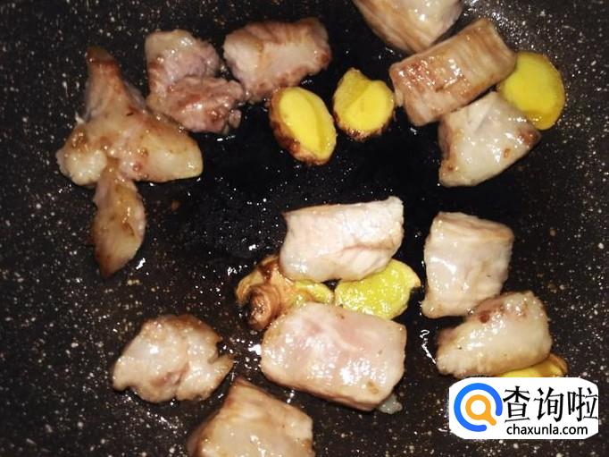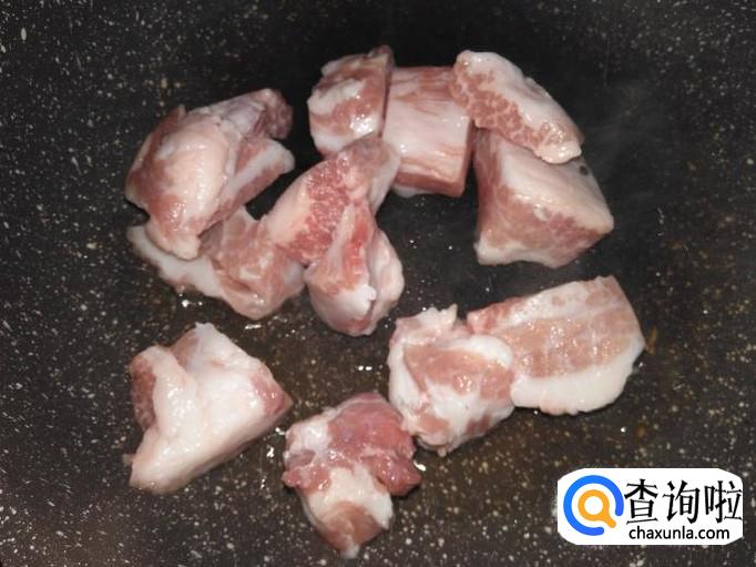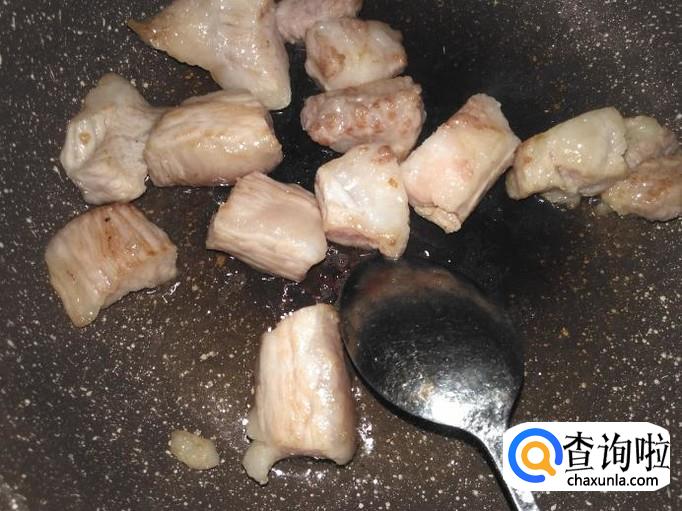 土豆去皮切成一段段,玉米斩成小段,猪肉切成方块。