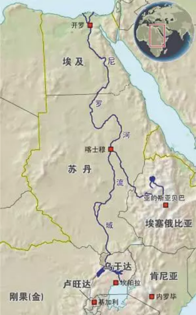 尼罗河是非洲第一大河,也是世界第二长河。它源远流长。流经北非的苏丹、埃及等文明古国,向北注入地中海。尼罗河全长6740千米,沿途经过众多湖泊.形成了六个大瀑布。尼罗河的泛滥发生在每年的夏天,河水泛滥时从上游带来大量矿物质和有机质,形成一层厚厚的淤泥。尼罗河的三角洲地区的庄稼能够一年三熟,所以被称为“丰收宝地”。埃及人年年都盼着尼罗河水位高涨,尤其注意河水的颜色变化,因为这样能够了解河水的动向,赶紧迁离避洪或播谷耕种。