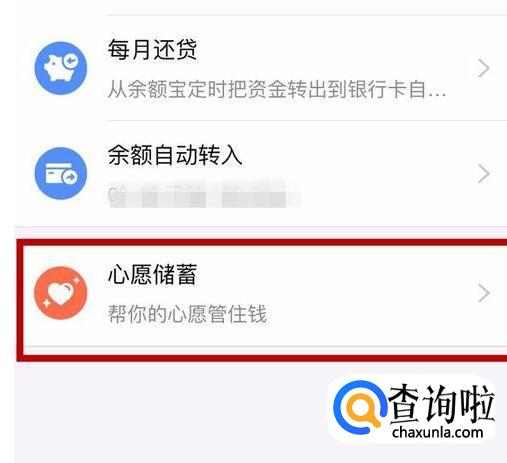 下面选择“心愿储蓄-服务”下面的“心愿储蓄-余额宝”选项。