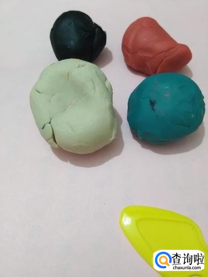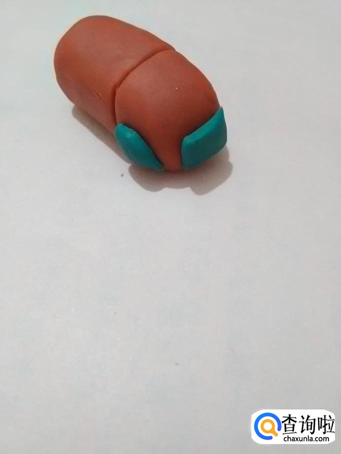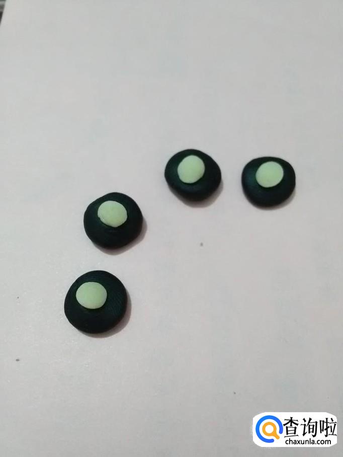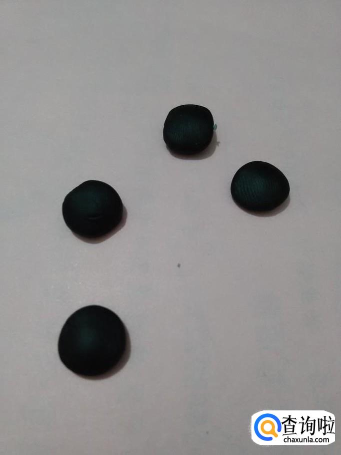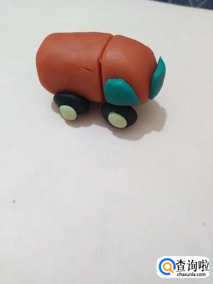 用白色团成四个小球,再按成扁片,当作四个车轴。