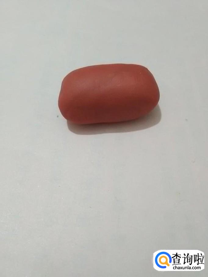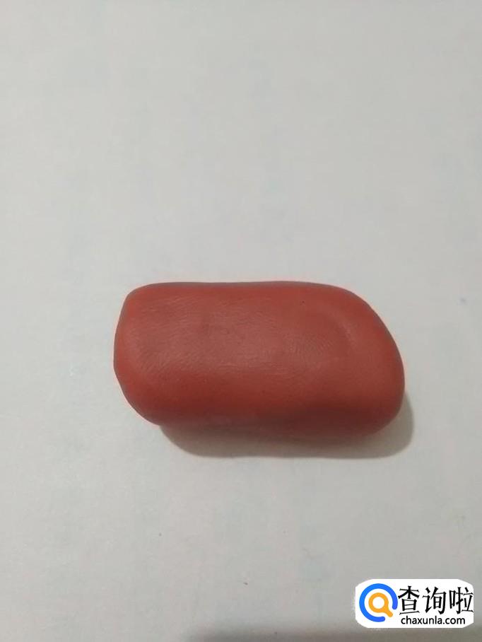 用小刀把椭圆形的左侧按成平的,表示车尾,右侧表示车头。