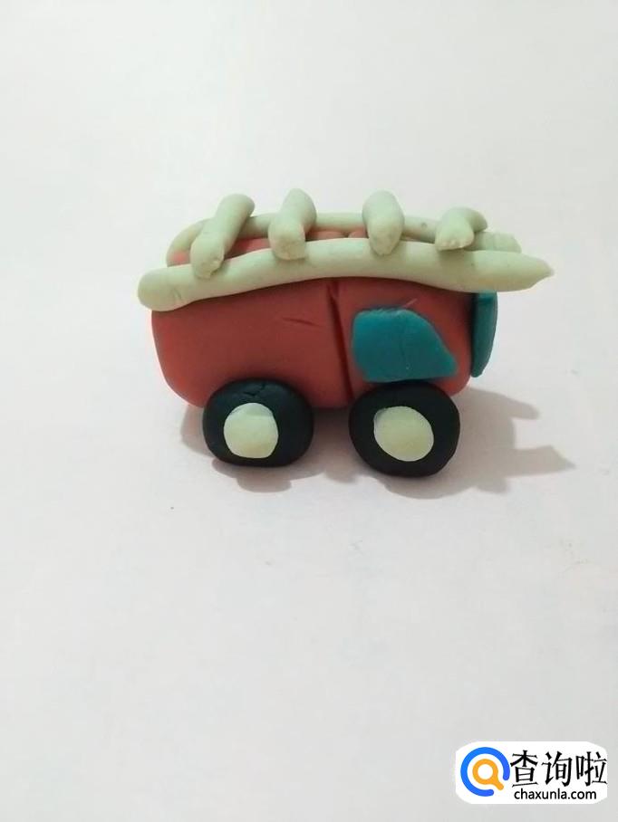 今天用彩泥捏一辆消防车,要捏出驾驶室、车身、车轮、梯子等几部分,下面就开始捏消防车。