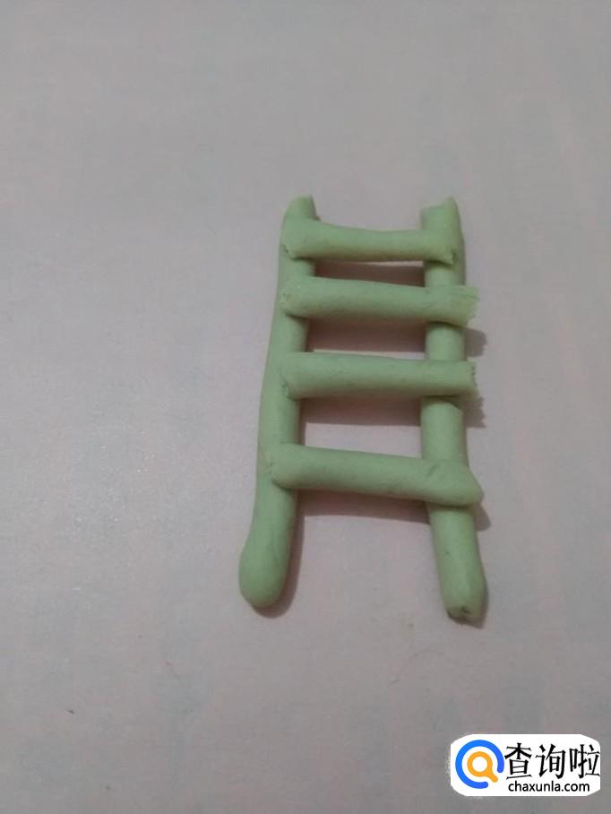 把白色长条用小刀切成两长四短,把两个长的放在两边,四个短的粘在中间,就做成了一个梯子。
