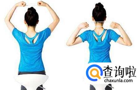 由坐姿开始,用橡皮筋套在双手腕处,然后双手臂从脖颈后面向正上方高举。过程中保持背部挺拔,坚持这个动作就能使练出的锁骨更性感。
