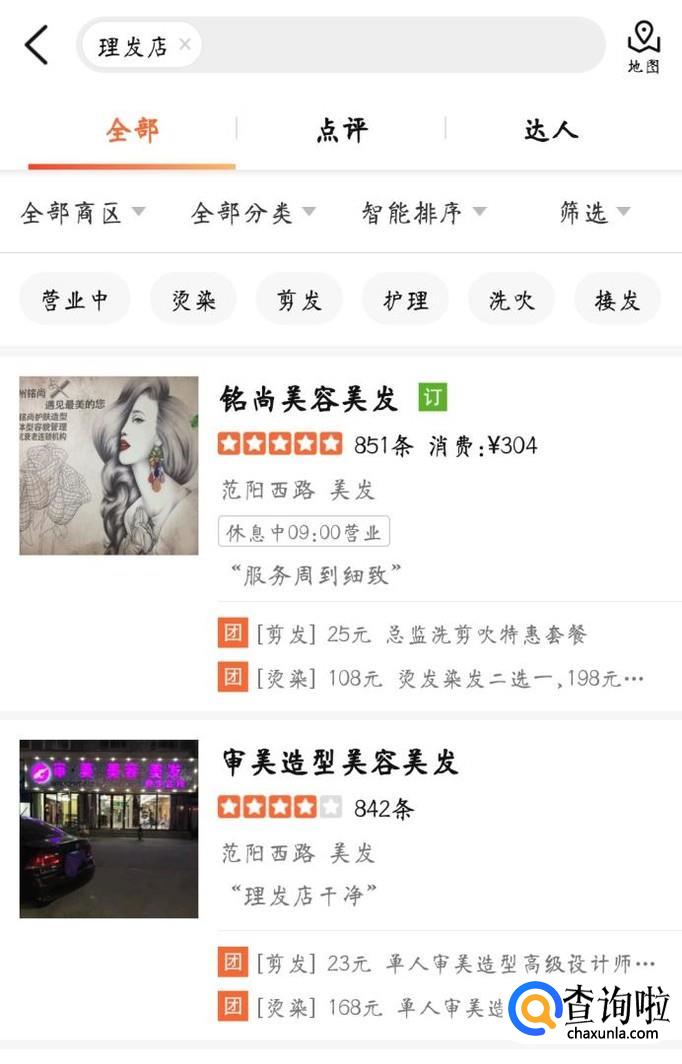 在上方的搜索栏里输入”理发店“开始查找理发店的名称