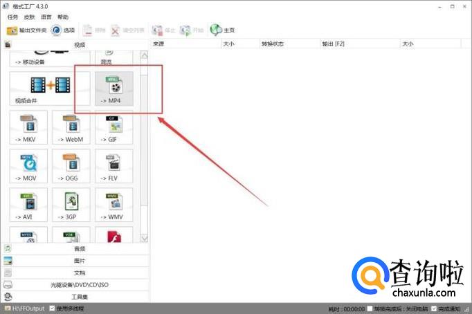 这里以格式工厂软件为例,打开格式工厂软件主页面,点击点击“视频-MP4”菜单选项。