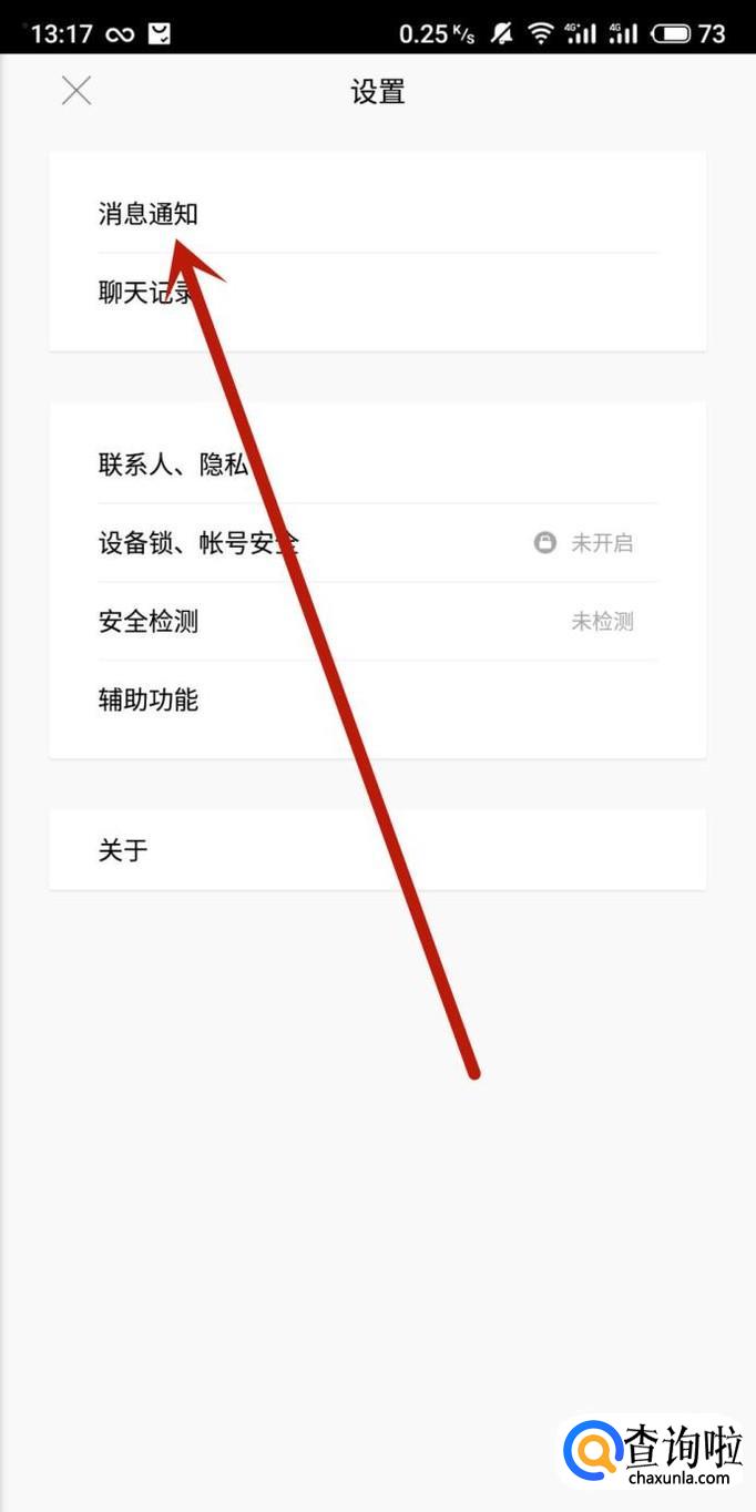 进入之后,选择“消息通知”,进入下一页面,如图所示。