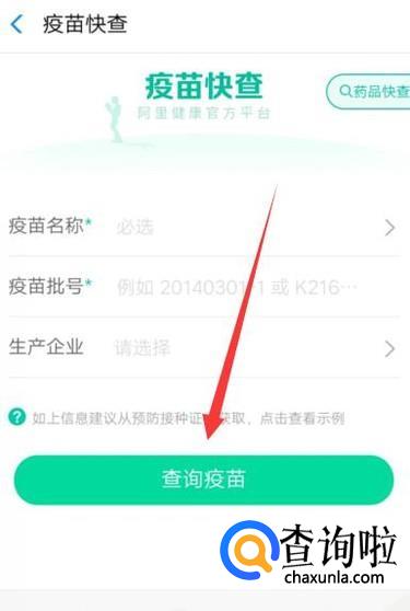 进入之后,将疫苗的批号、名称输入上即可查询,如图所示。