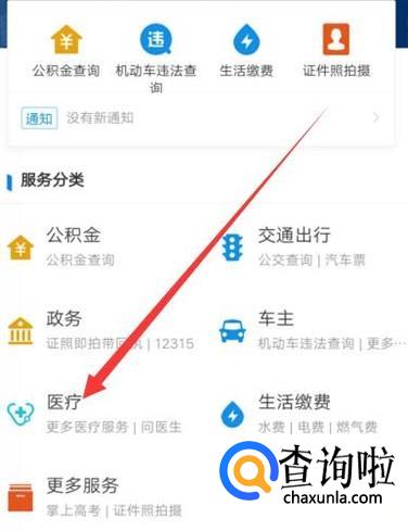 进入之后,选择“医疗”,进入下一页面,如图所示。