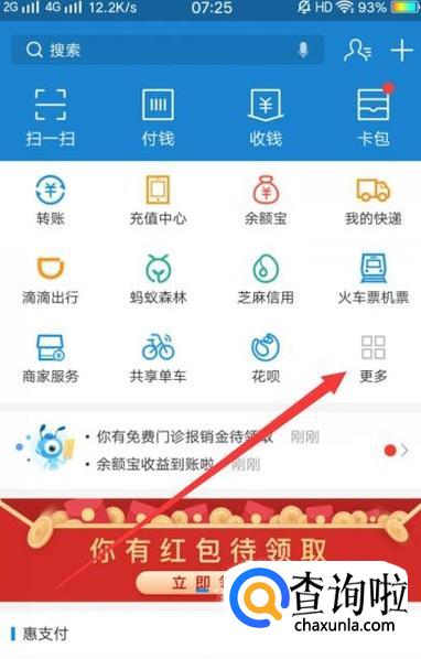 打开手机,找到“支付宝”,点击并进入,如图所示。