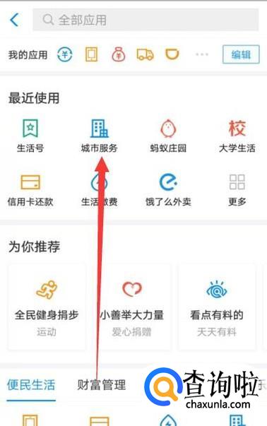 进入之后,选择“城市服务”,进入下一页面,如图所示。